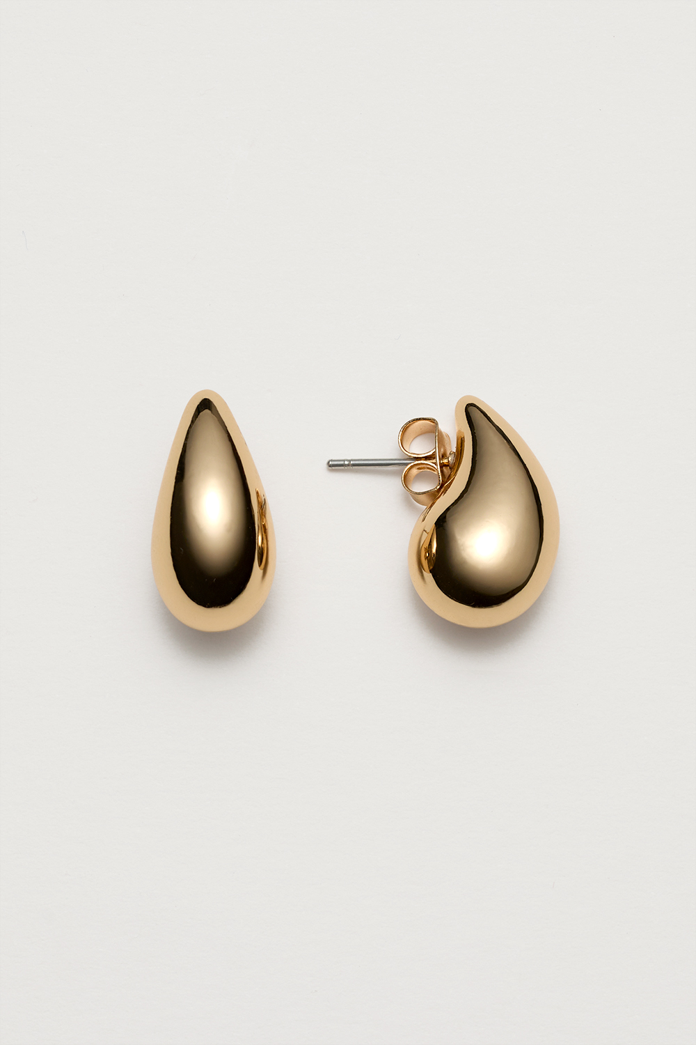Små dråbeformede ørestikker i blankt, guldfarvet metal. Et par diskrete øreringe i et stilrent design, der passer til enhver lejlighed.