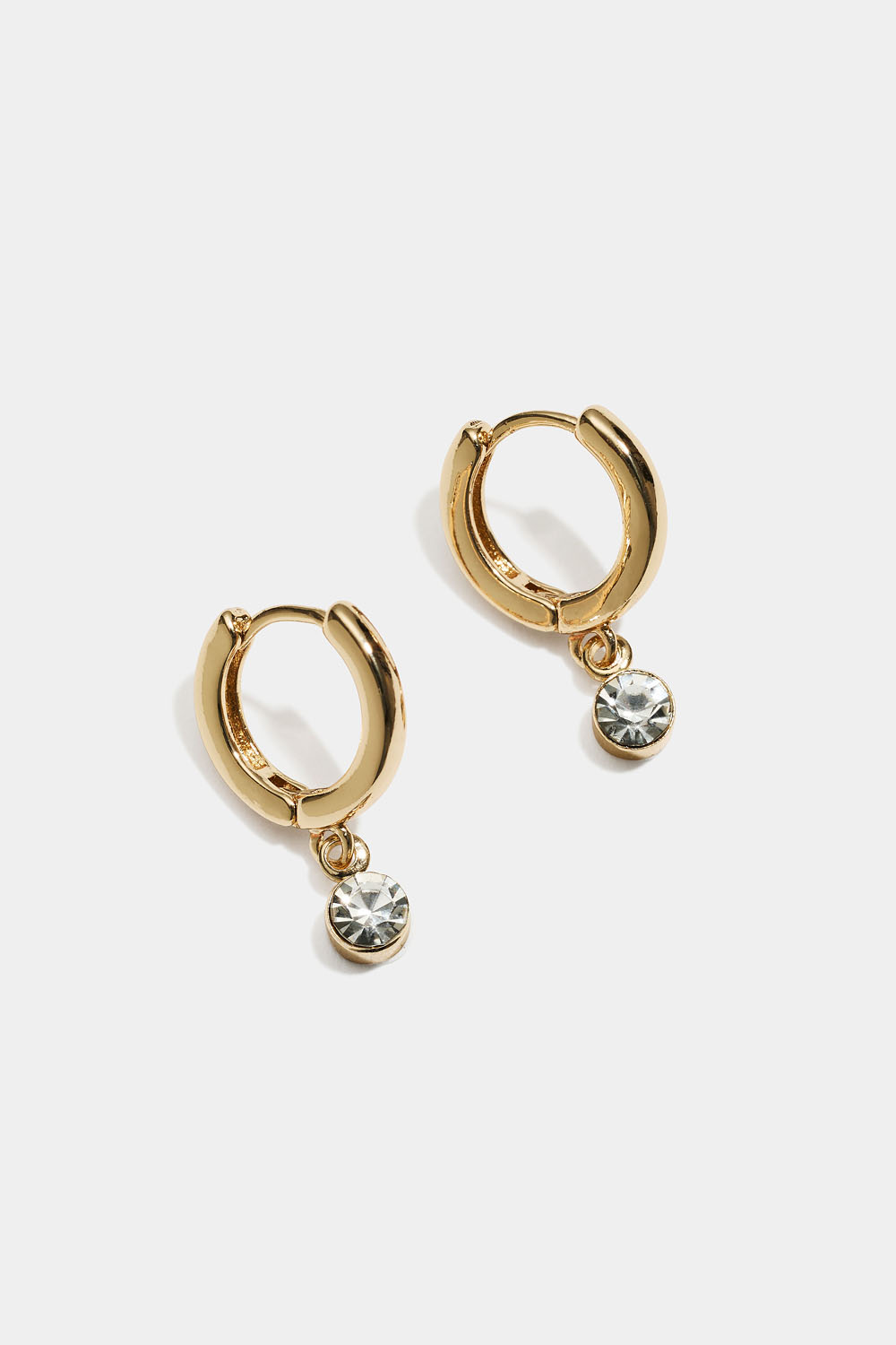 Små hoops i guldfarvet metal med en lille, rund hængende glassten.
