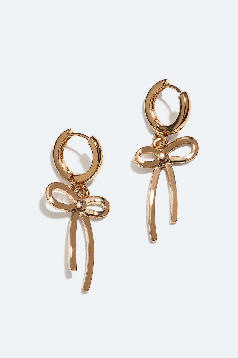 Små hoops i blankt, guldfarvet metal med dekorative sløjfevedhæng.