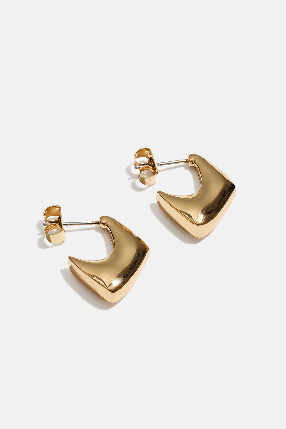 Små hoops i guldfarvet metal i kantet design.