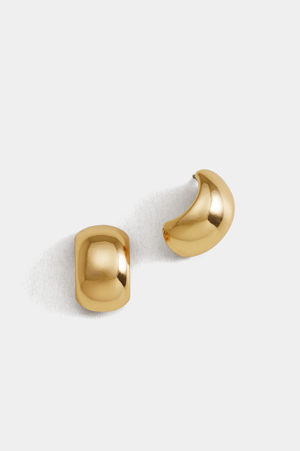 Brede ørestikker i guldfarvet metal i halvmåneform.