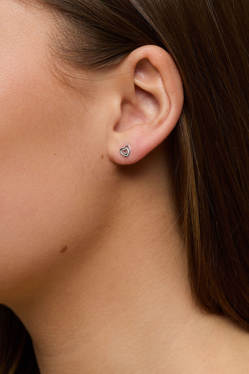 Små hjerteformede ørestikker i ægte sølv