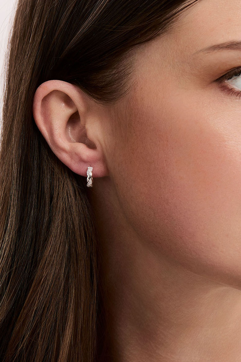 Små hoops i 18k forgyldt ægte sølv med et snoet design og små kubisk zirkonia