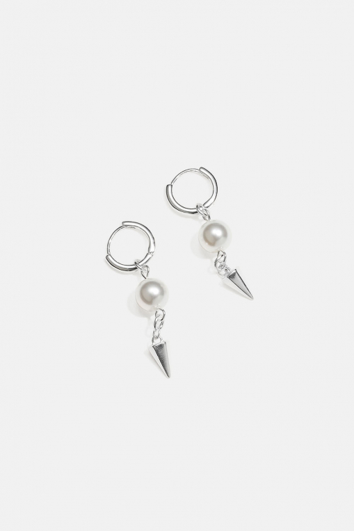 Små hoops i ægte sølv med hængende perler og nitter i gruppen Smykker / Øreringe / Hoops / Hoops med vedhæng hos Glitter (553005251001)