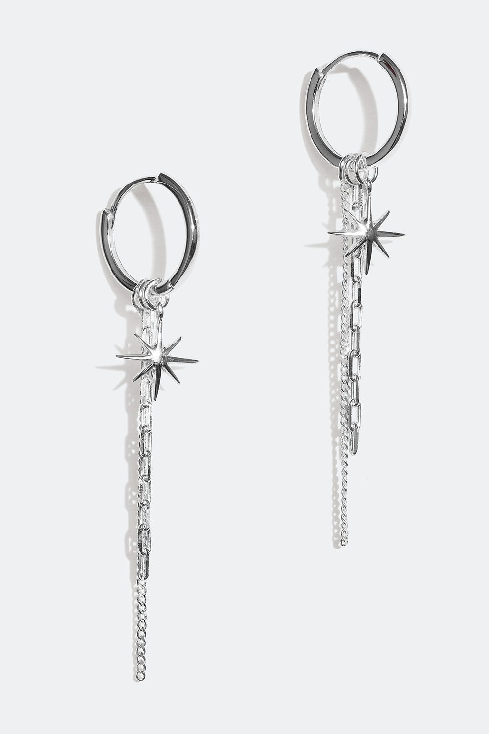Små hoops i ægte sølv med stjernevedhæng og lange led. Et par dekorative øreringe, der passer til enhver lejlighed.