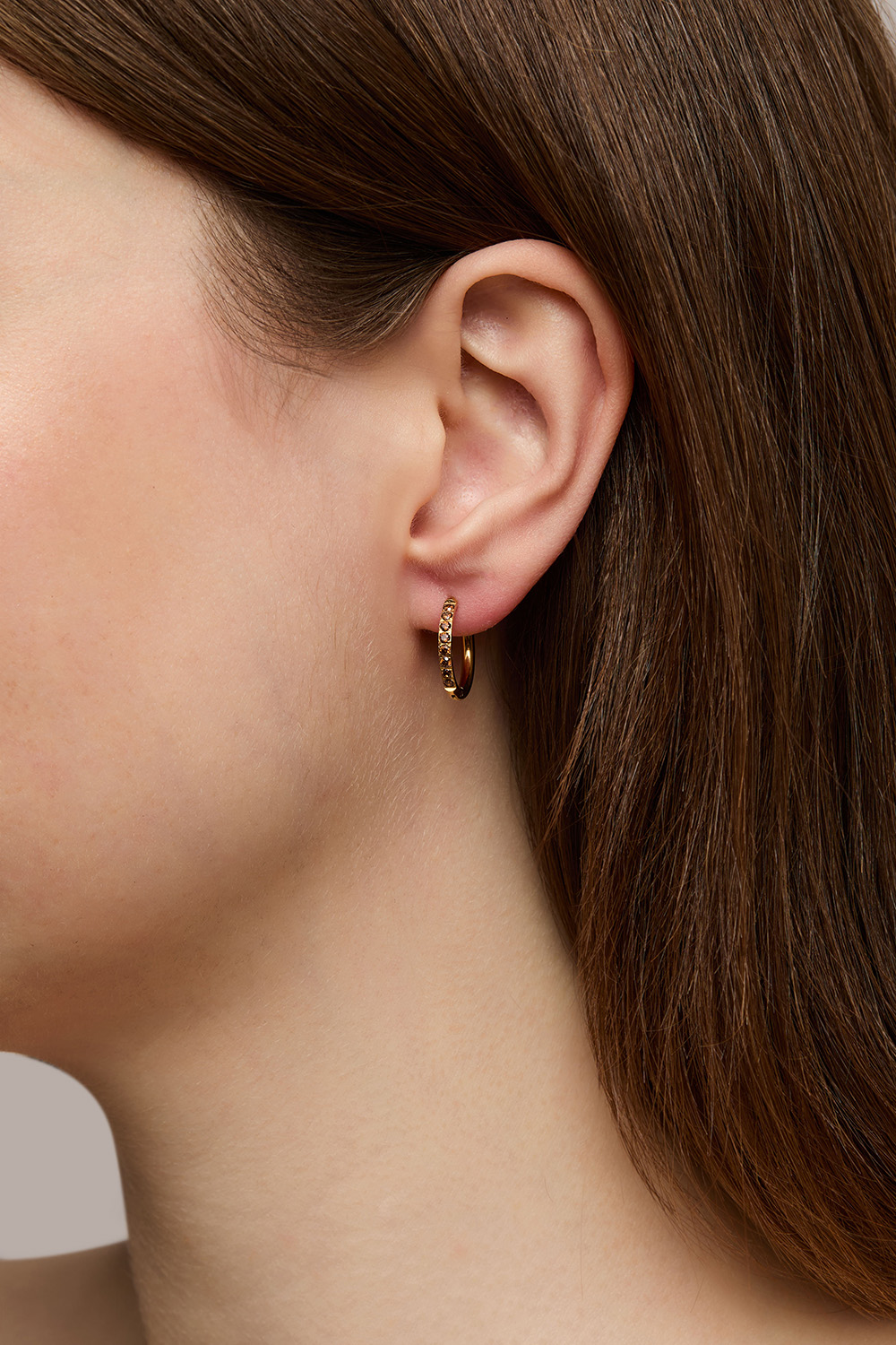 Øreringe i højglanspoleret rustfrit stål, der er PVD-belagt med 18K guld.