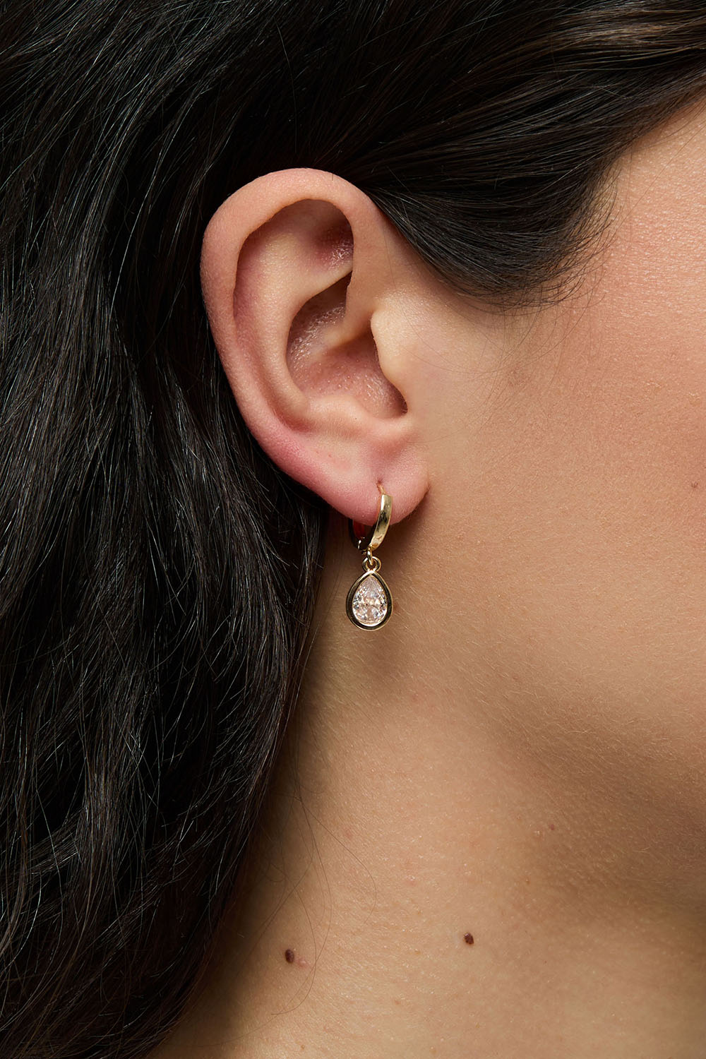Små hoops med dråbeformede vedhæng med glassten