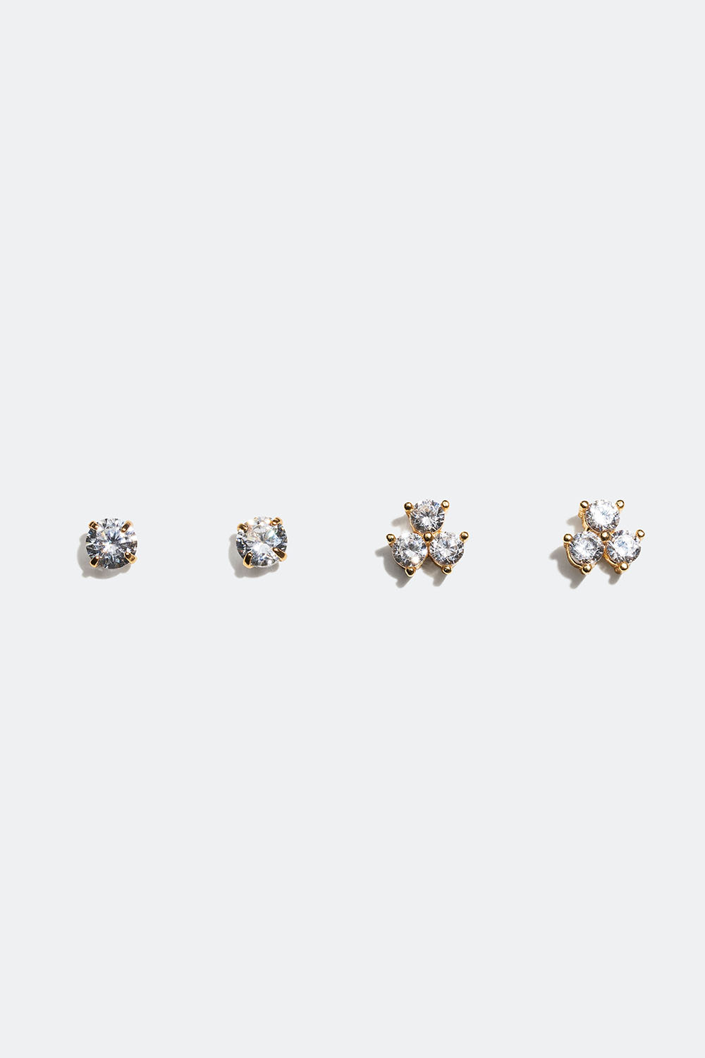 2-pak med små ørestikker i 18k forgyldt ægte sølv med kubisk zirkonia-sten. Stilfuld flerpakning med hverdagsøreringe, der er perfekte at bære sammen, hvis du har flere huller i ørerne.