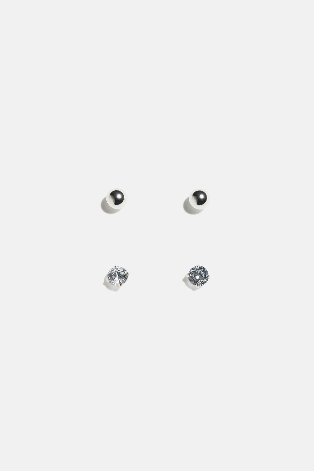 To par miniørestikker i ægte sølv. Et par klassiske kugler og et par med små sten af kubisk zirkonia.