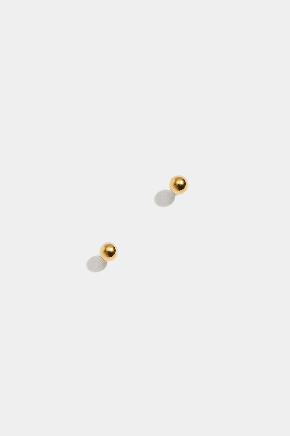 Små, runde ørestikker i højpoleret rustfrit stål, der er PVD-belagt med 18K guld.