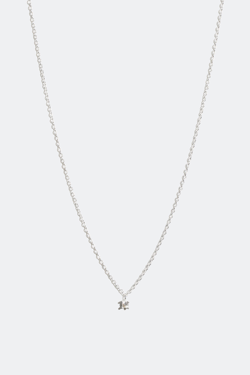 Smal halskæde bestående af en kæde i ægte sølv og en lille dekorativ sten i kubisk zirkonia. Et tidløst smykke, der tilfører dit outfit en diskret, men glitrende detalje.