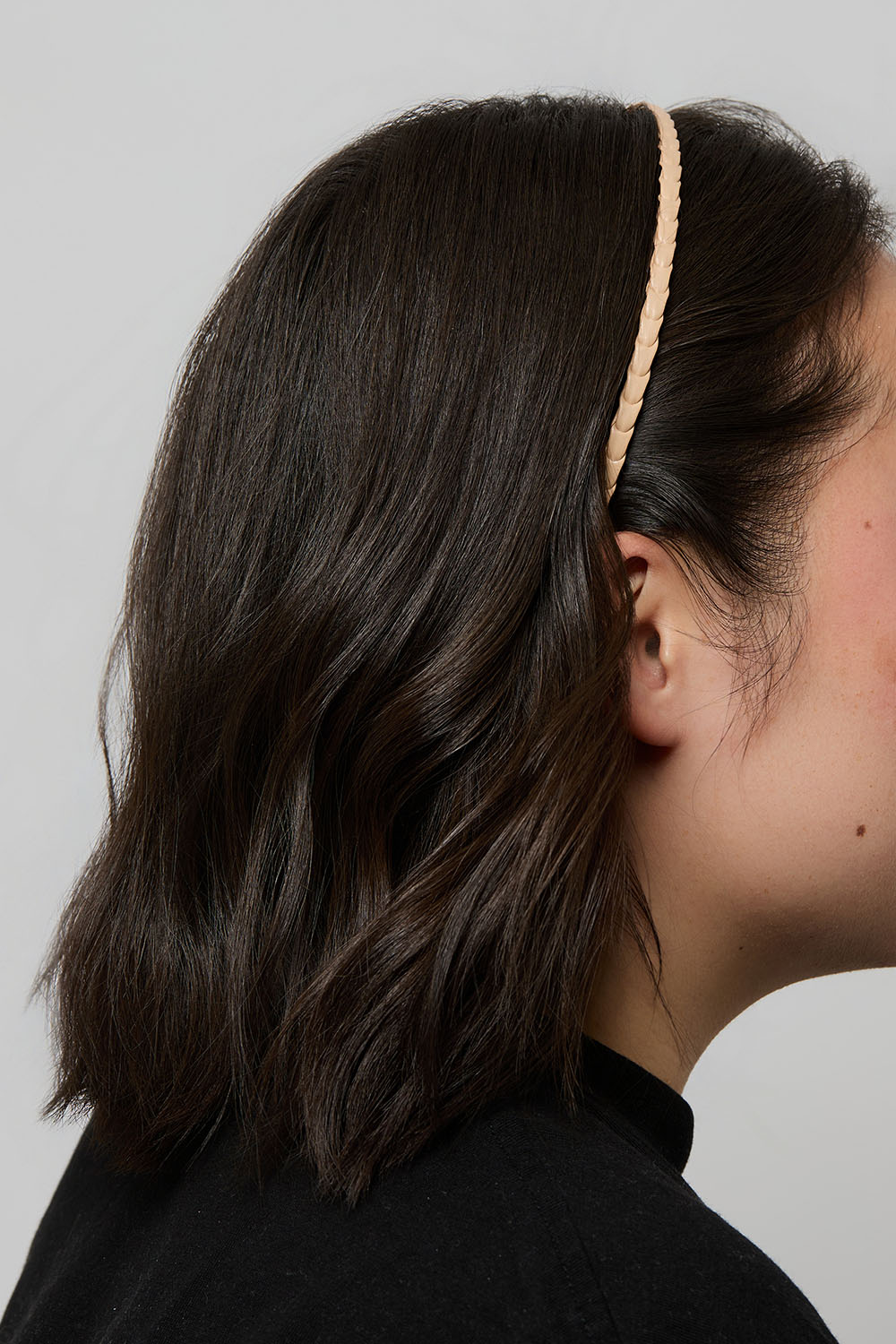 Smalt diadem med beige flettet imiteret læder.