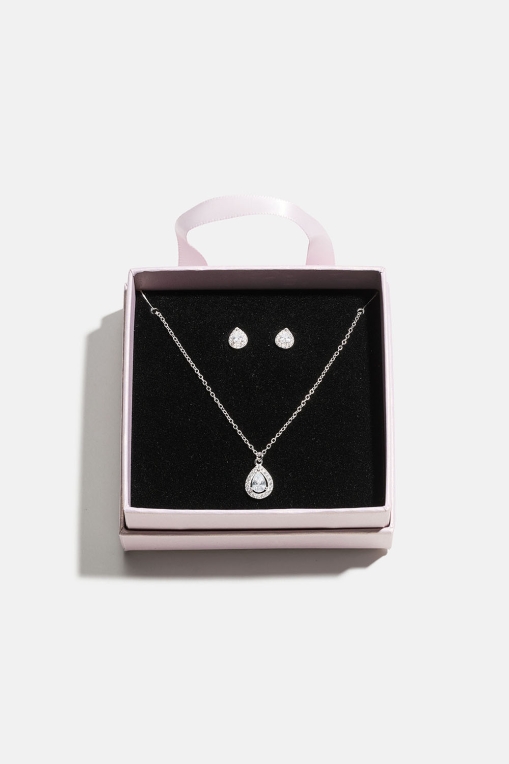 Smykkesæt i sterlingsølv med dråber og kubisk zirkonia i gaveæske i gruppen Ægte sølv / Sølvhalskæder / Halskæder i ægte sølv med vedhæng hos Glitter (509000371001)