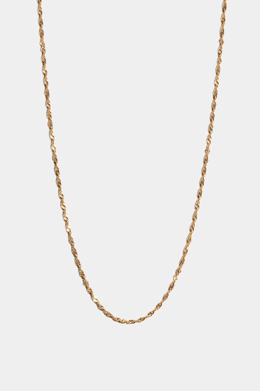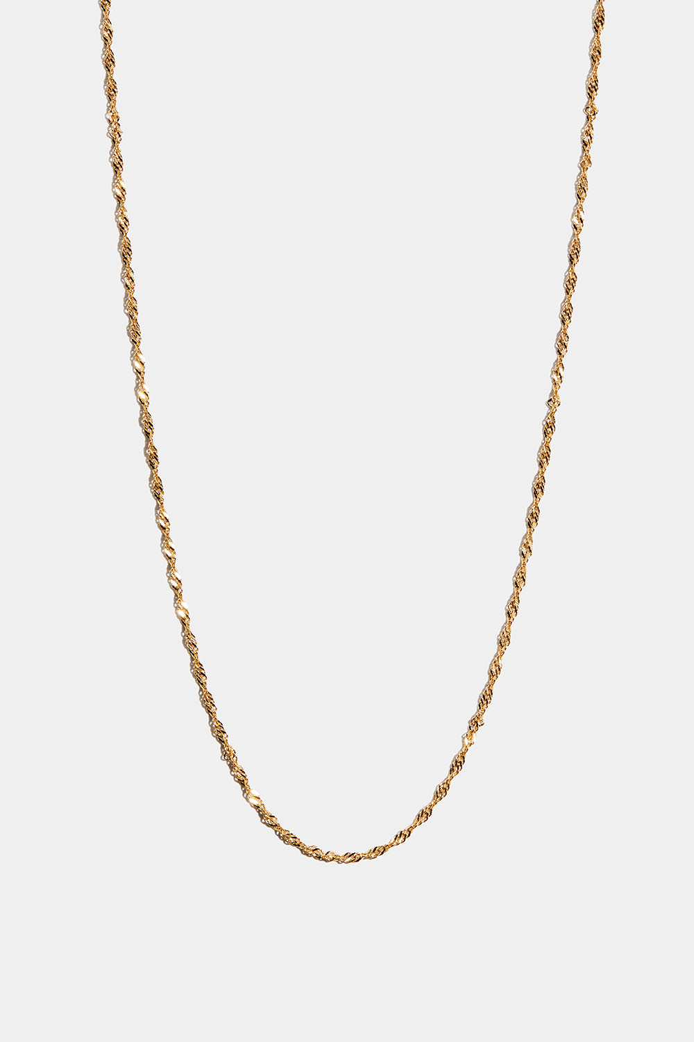 Let snoet kæde i 18k guldbelagt ægte sølv med tætte og flade led. Perfekt halskæde til hverdagsbrug, men kan også pyntes med charms eller kombineres med andre halskæder for et lag på lag-look.