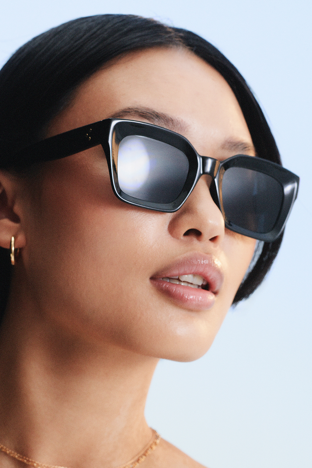 Solbrillerne har en firkantet form og findes i enten nude eller sort. Solbrillerne har tonede linser, som giver 100% UV-beskyttelse, kategori 3, CE-mærkede.