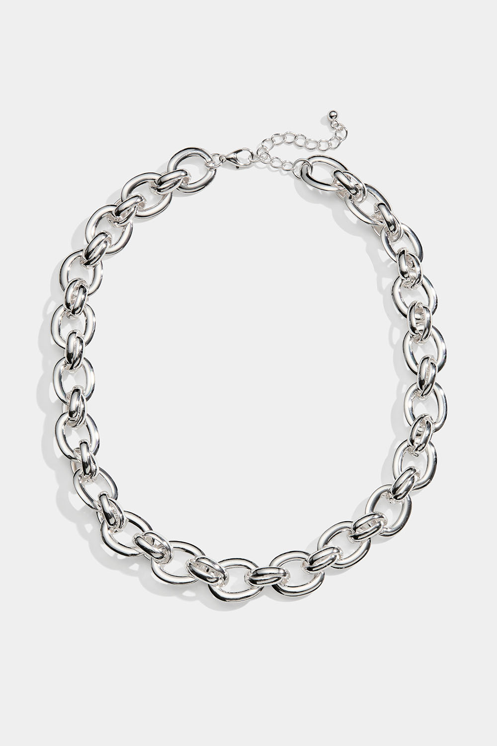 Sølvfarvet kædehalskæde med ovale flade led i gruppen Smykker / Halskæder hos Glitter (254001961001)