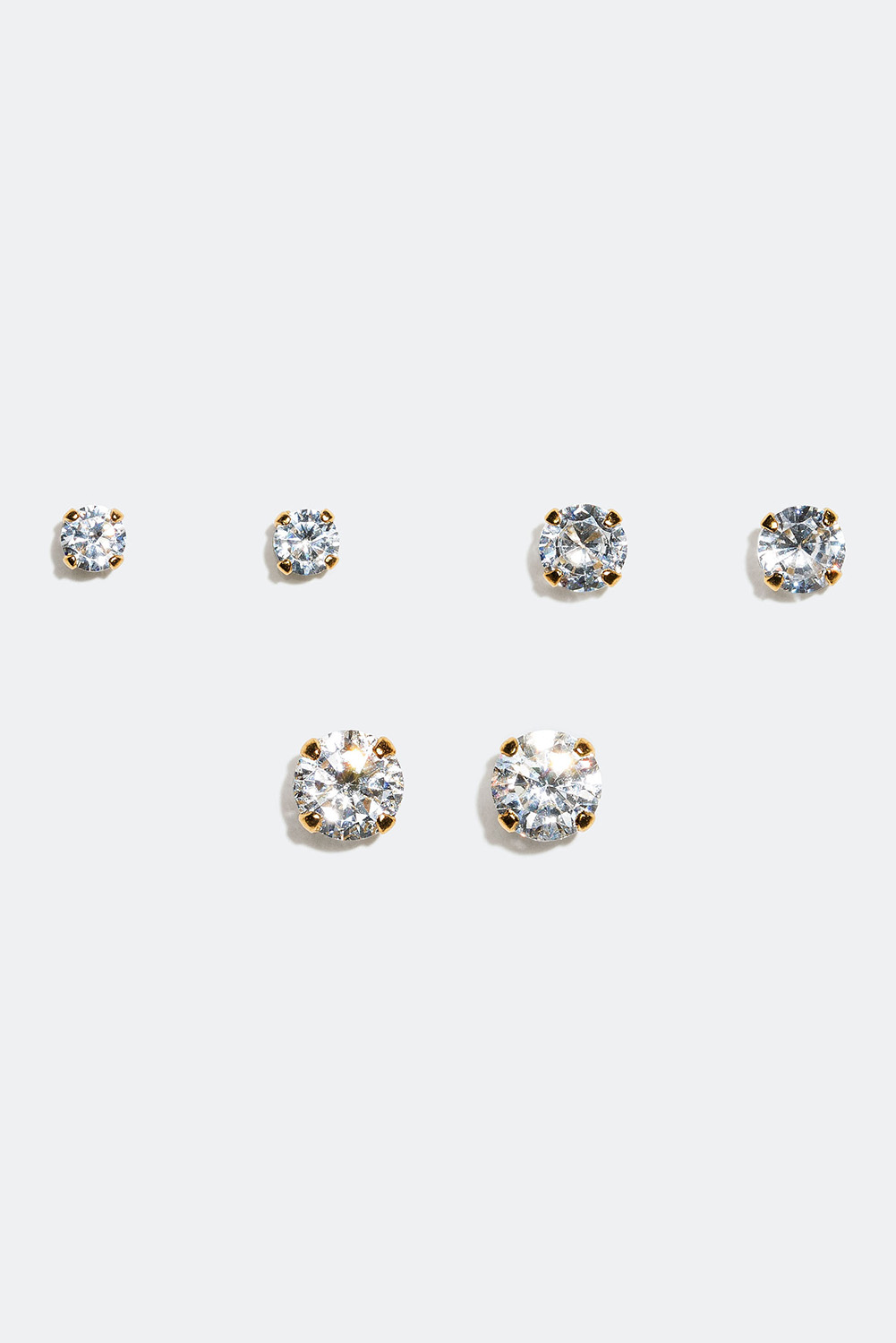 Ørestikker med runde glassten, forgyldt med 18 kt. guld, 3-pack, 4 mm