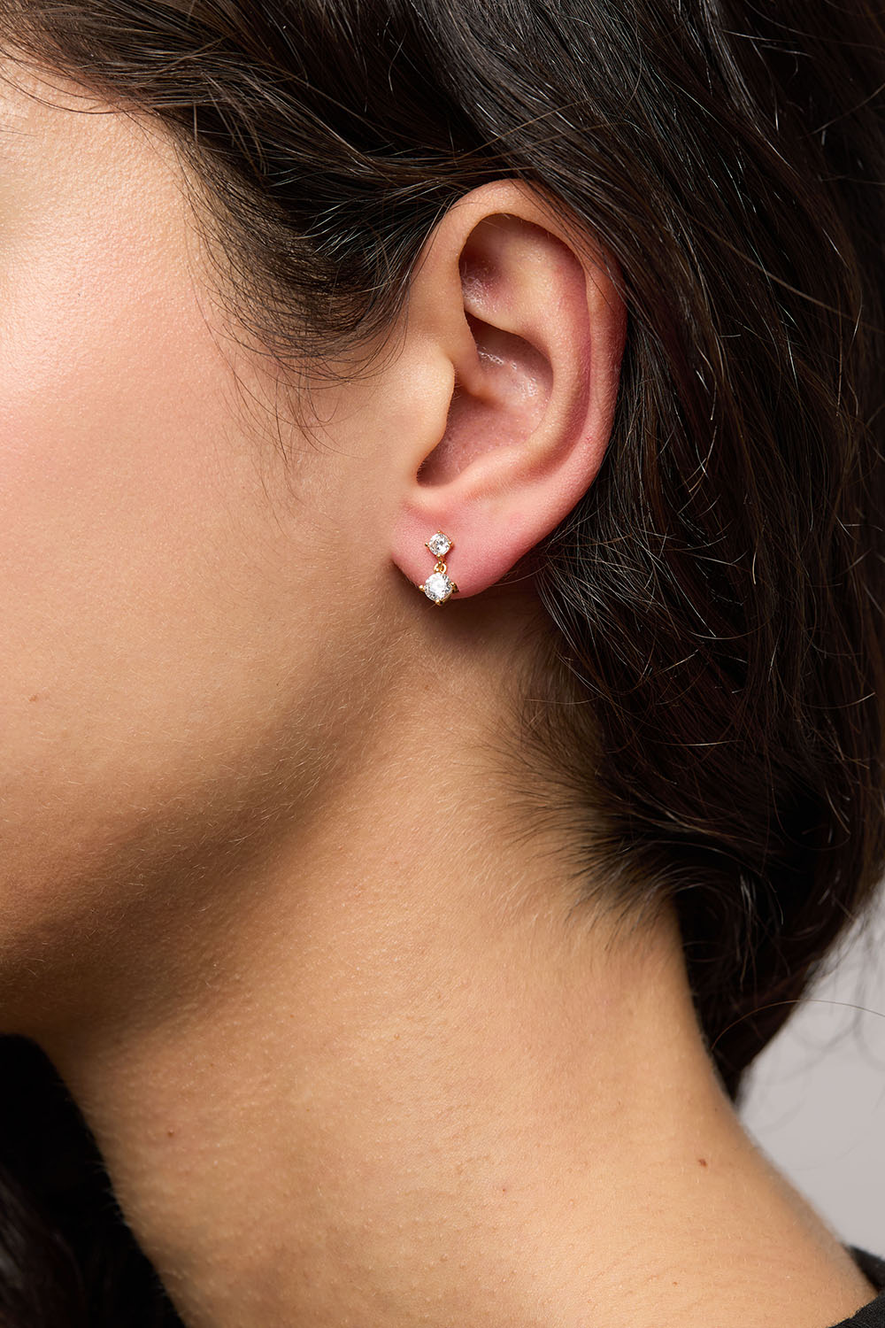 Ørestikker i 18k guldpletteret ægte sølv med en mindre og en større, hængende sten i kubisk zirkonia.