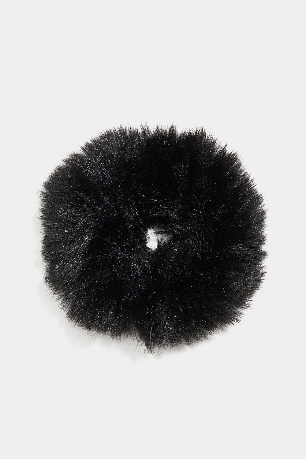 Blød og fluffy scrunchie i sort kunstpels.