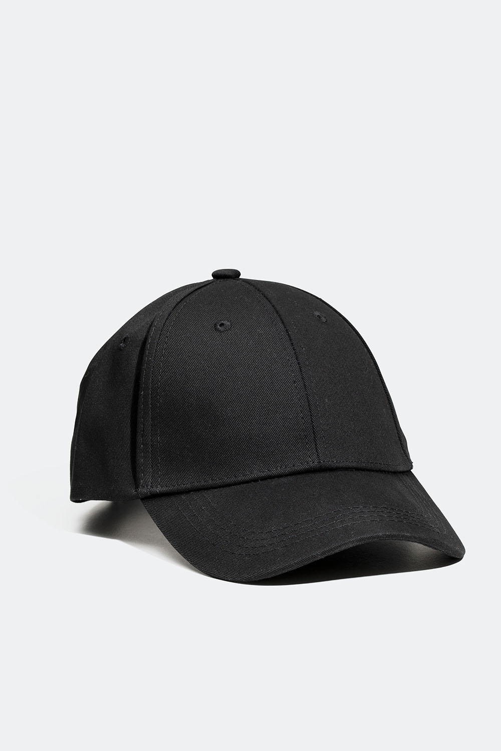 Sort kasket i klassisk model med let buet skygge. Klassisk kasket med design i 6-paneler og størrelsen kan justeres på bagsiden med et metalspænde.