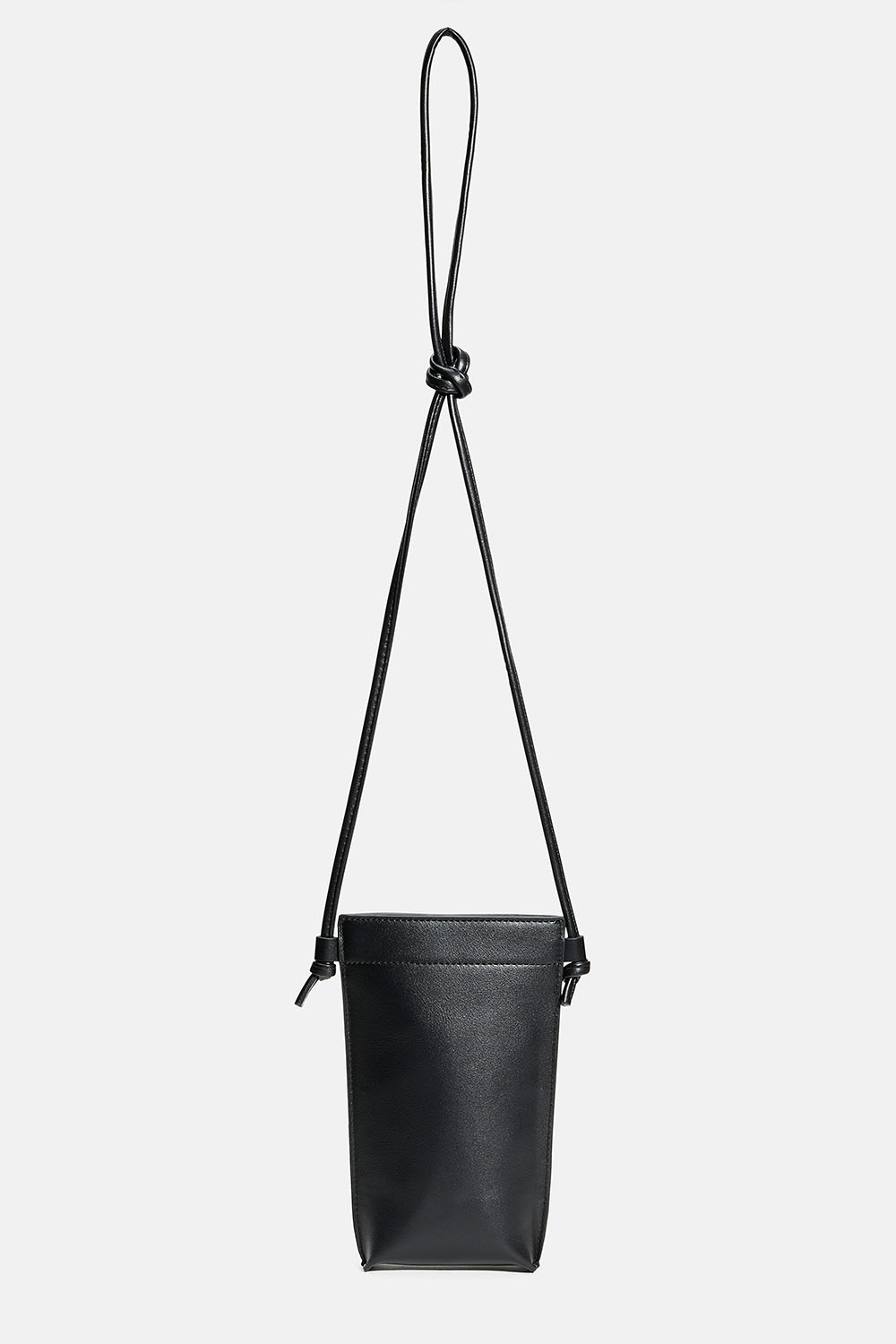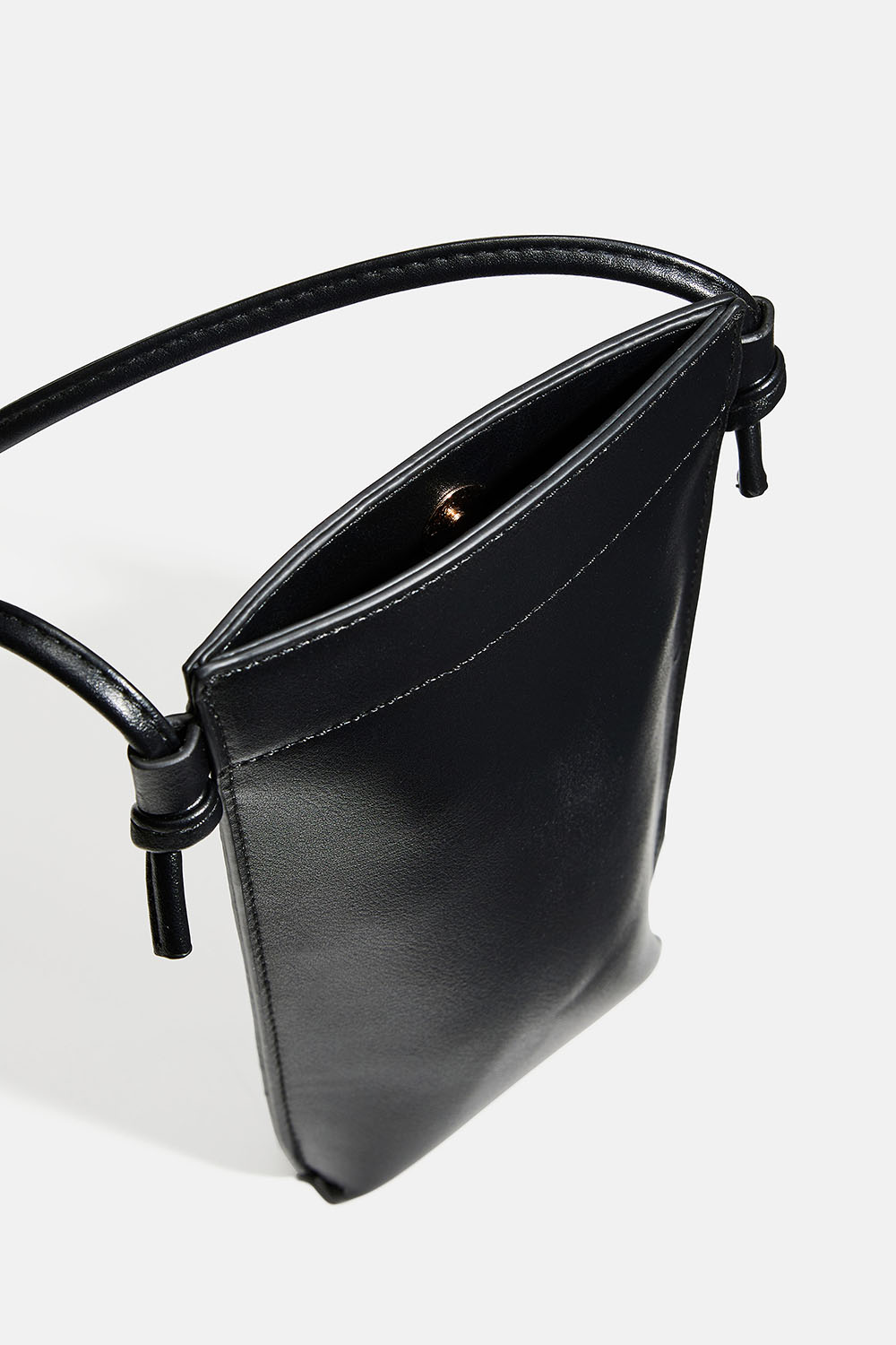 Stilren mobiltaske i sort imiteret læder med magnetlukning. Kan anvendes på flere måder – rundt om halsen, crossbody eller over skulderen.
