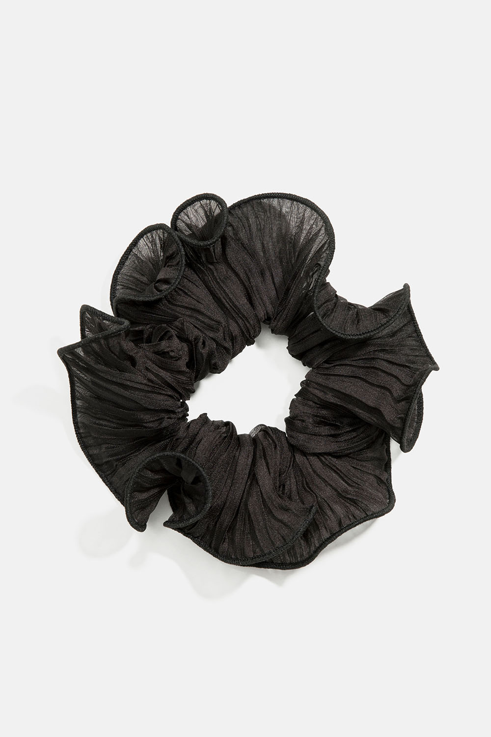 Sorte scrunchies i gennemsigtig, sort, plisseret organza