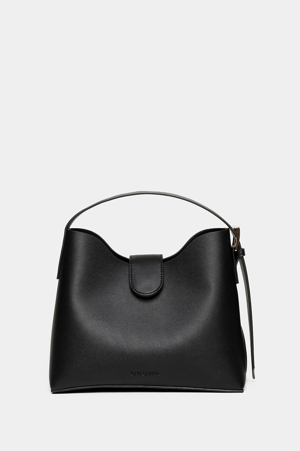 Sort taske med Don Donna-logoet præget foran. En stilfuld taske med en bred, justerbar rem og en længere, aftagelig skulderrem. Tasken leveres med en mindre indvendig taske. Perfekt hverdagstaske og tilbehør til arbejde og en dag i byen. Skulderremmen er aftagelig og justerbar, så du også kan have tasken på som crossbody.