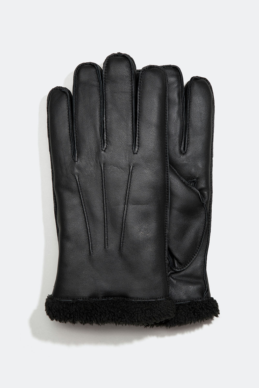 Skindhandsker til herrer med detaljerede syninger på oversiden fra Handskmakaren i fåreskind og blødt teddyfor.