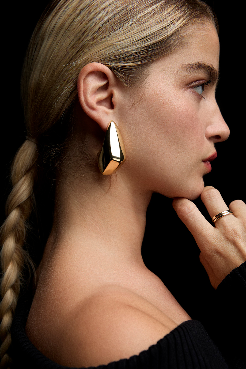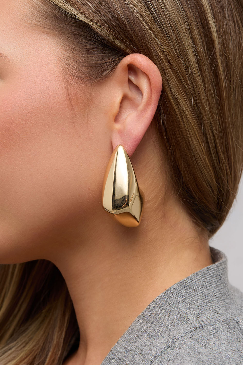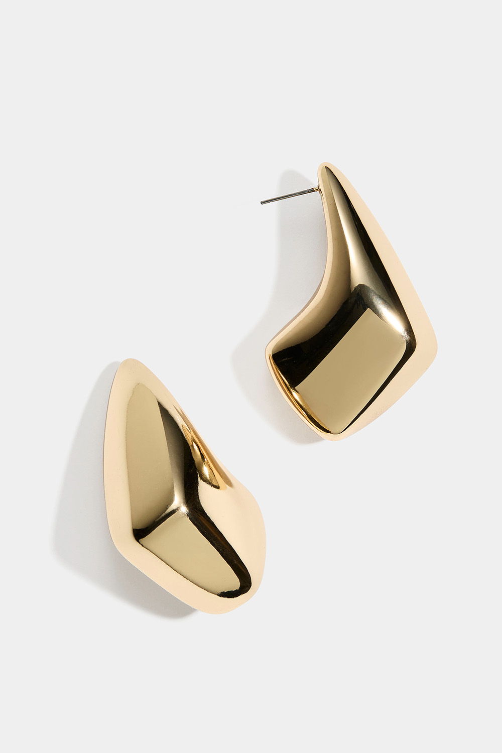 Store øreringe i skinnende guldfarve i kantet dråbeform