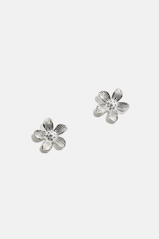Større ørestikker i ægte sølv med strukturerede blomster