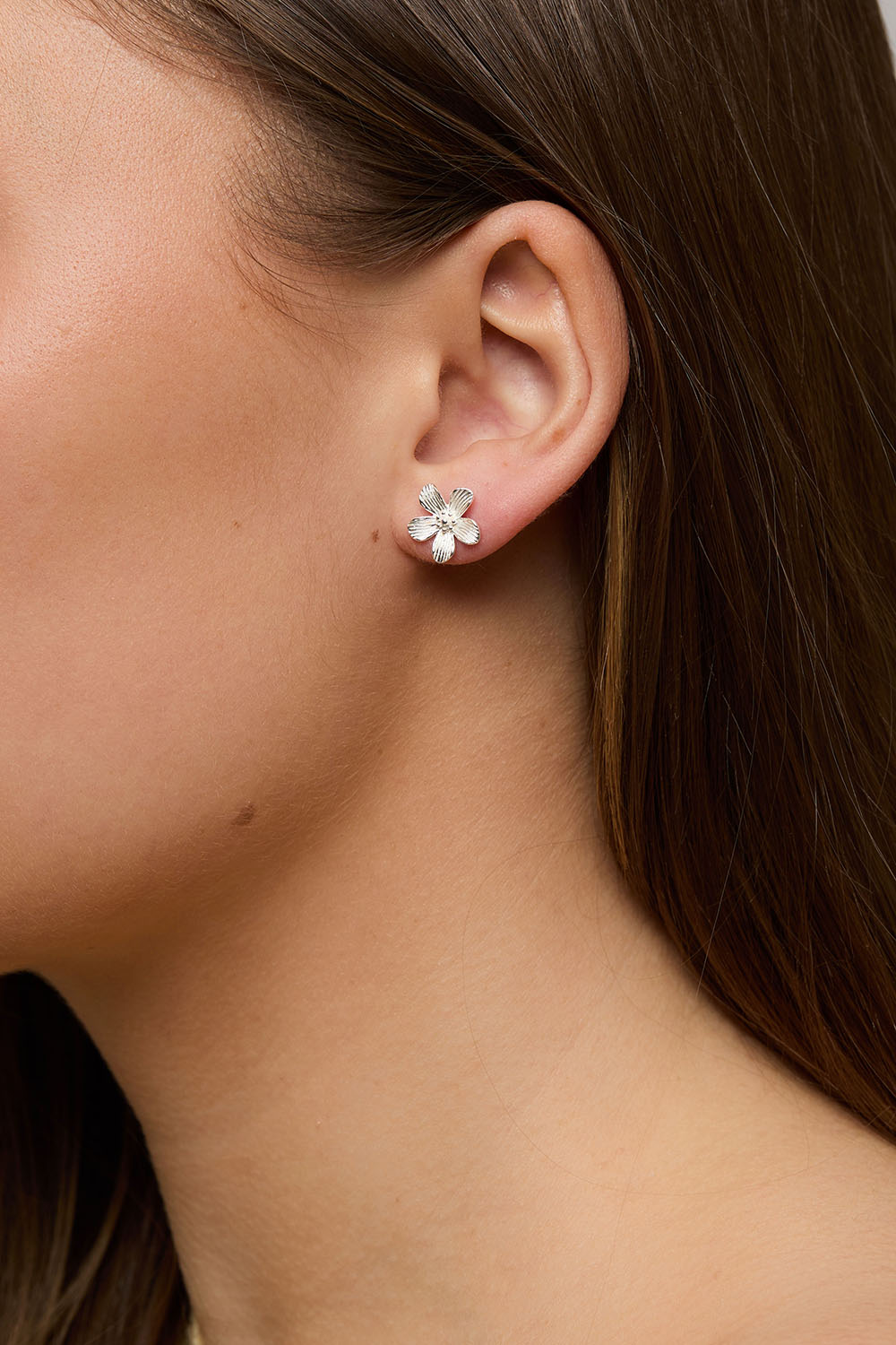 Ørestikker i ægte sølv med blomster med struktureret overflade.