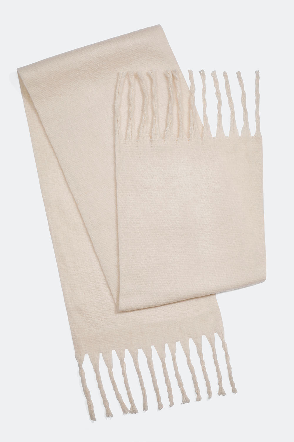 Stort vævet halstørklæde i blød kvalitet med børstet overflade. Halstørklædet er hvidt og forsynet med lange frynser på de korte sider. Et dejligt tørklæde med en høj hyggefaktor, der holder dig varm og er perfekt til køligere dage.