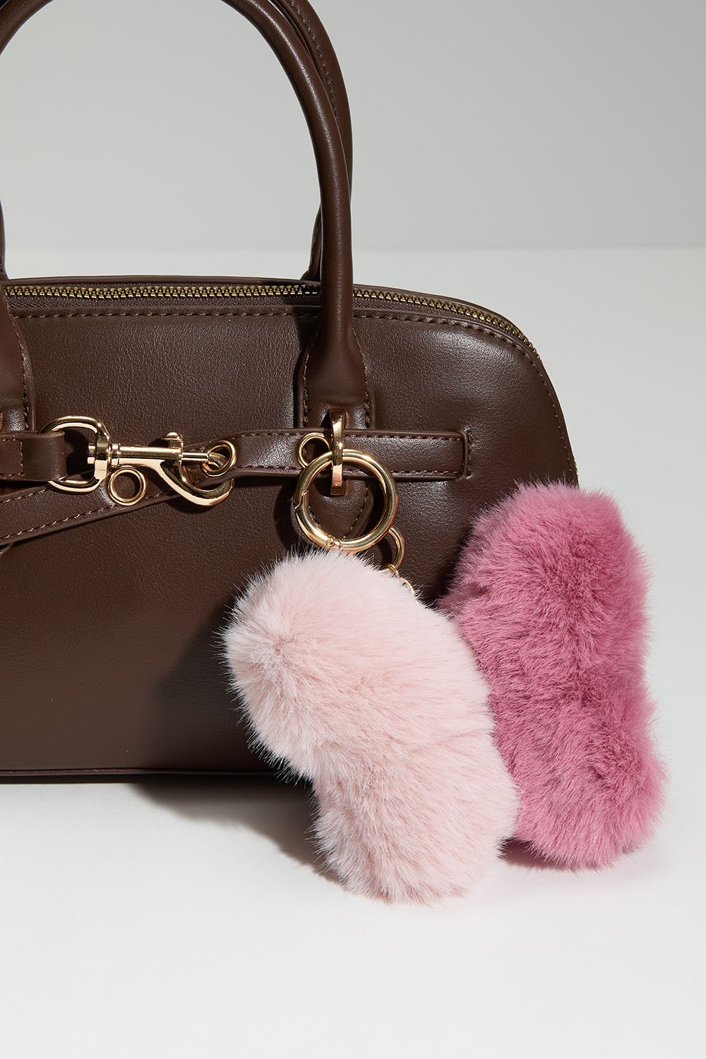 Taskepynt med stor fluffy sommerfugl i lyserødt og mørkerødt. Kan fastgøres med karabinlås.