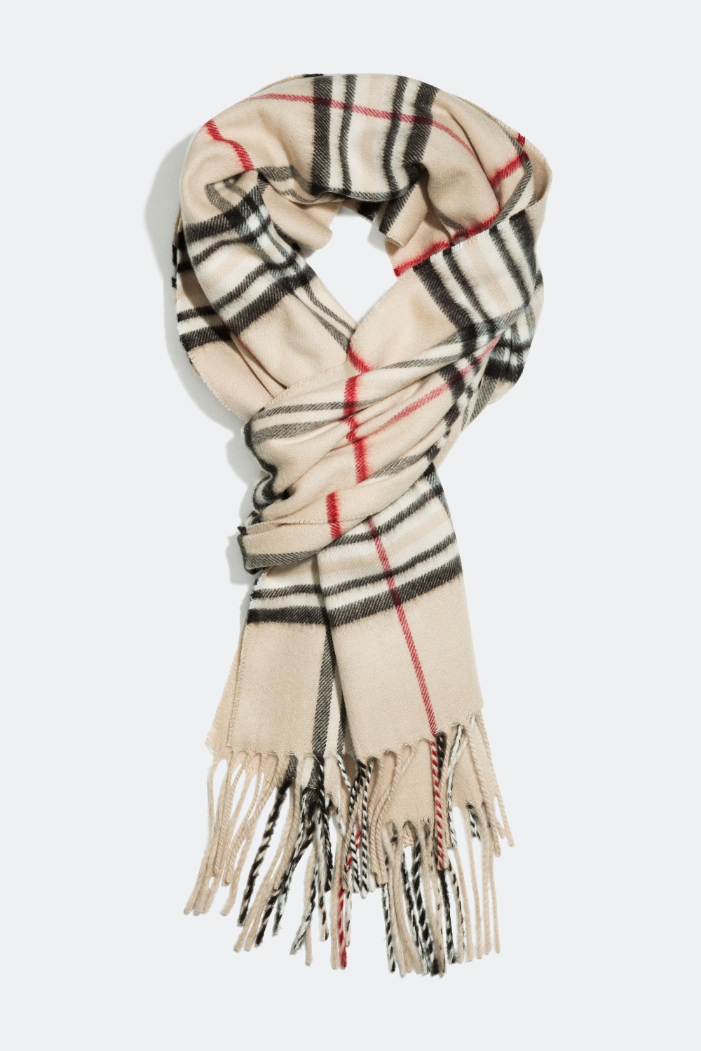 Ternet halstørklæde med frynser i blandede farver. Tørklædet findes i både lyserød og beige. Det perfekte tørklæde til de koldere dage.