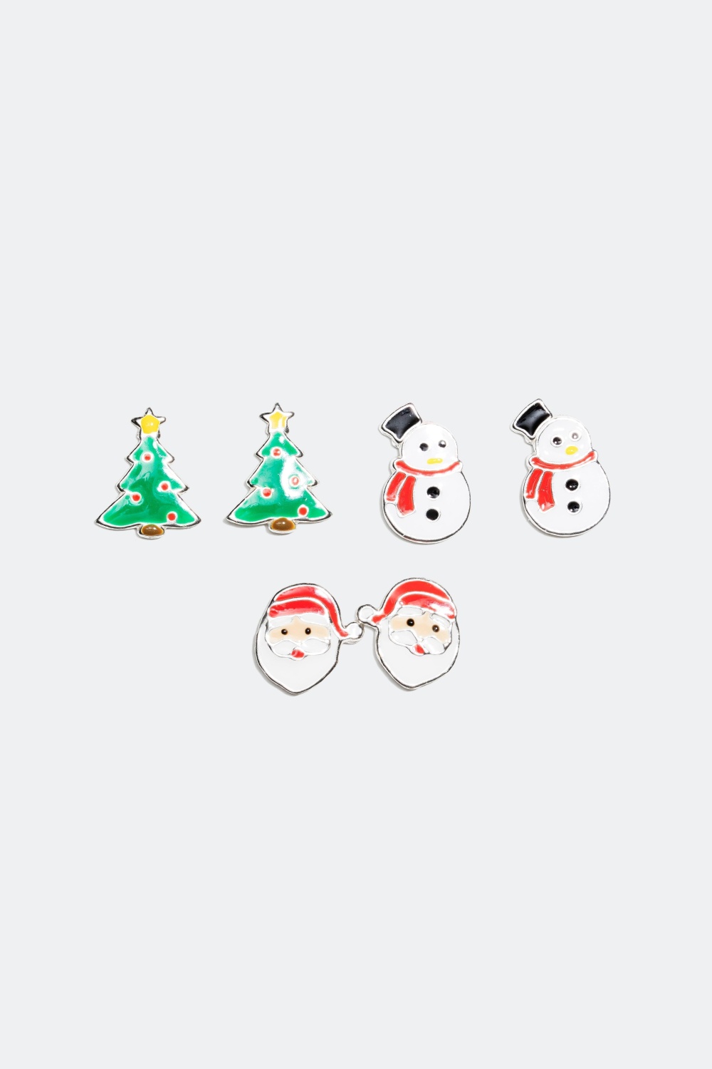 Tre par øreringe i ægte sølv med juletema. Pakken indeholder et juletræ, en julemand og en snemand.