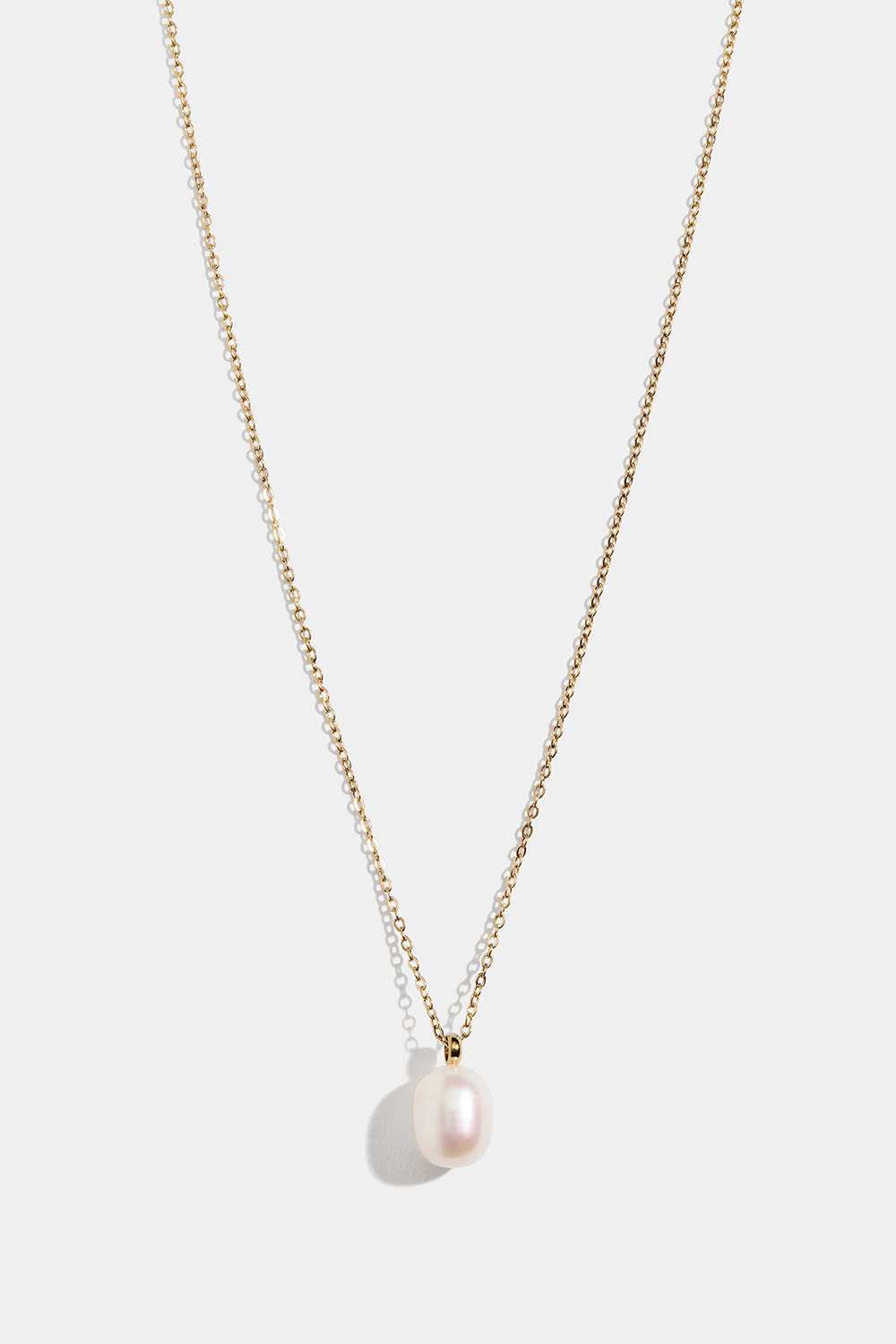 Tynd kæde-halskæde i højpoleret rustfrit stål, der er PVD-belagt med 18K guld, med en stor hængende ferskvandsperle.