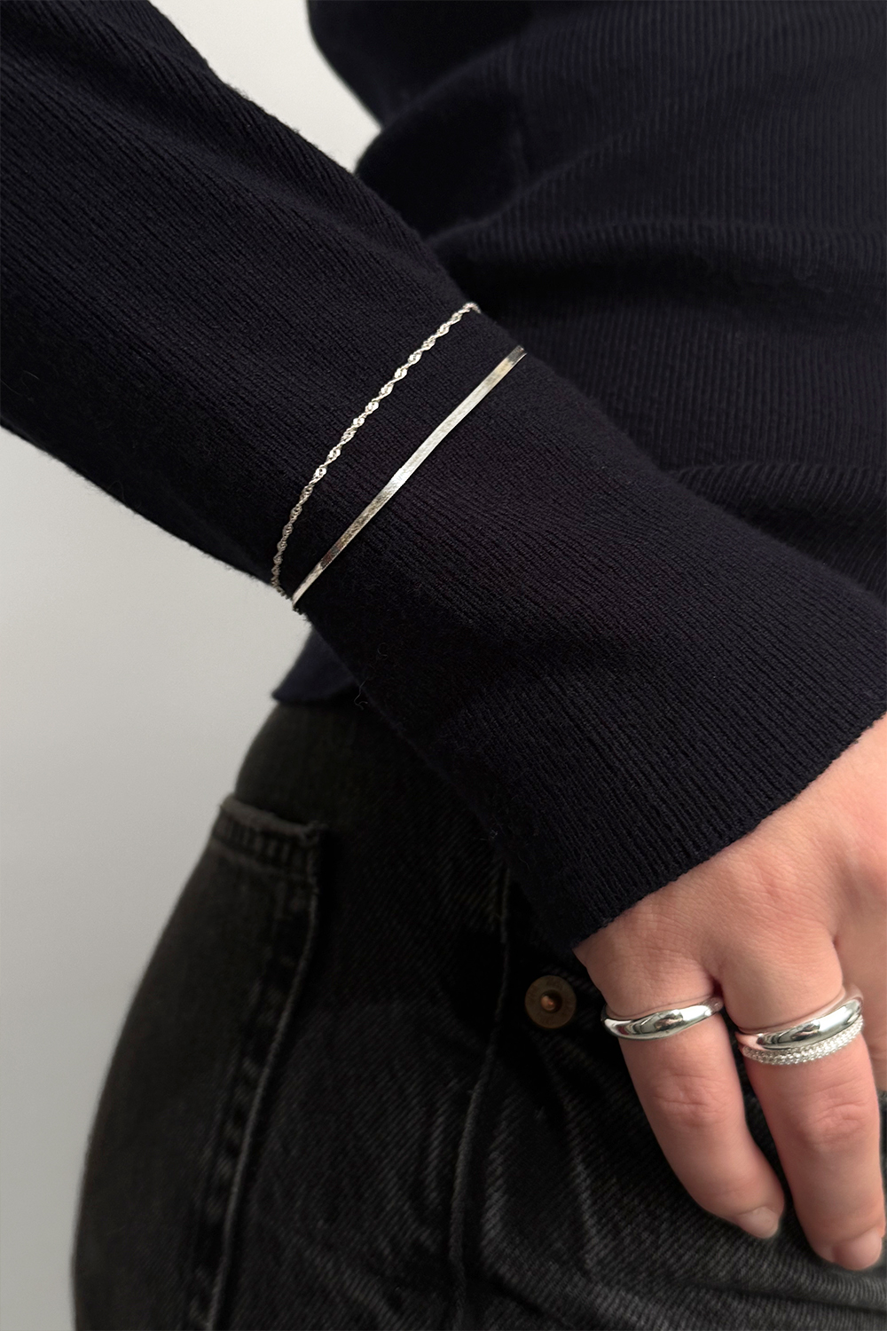 Tyndt slangekædearmbånd i ægte sølv i gruppen Ægte sølv / Sølvarmbånd hos Glitter (551000621001)
