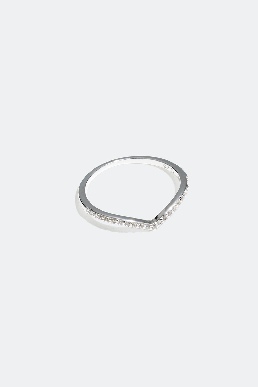 Tynd v-formet ring i ægte sølv med sten i Cubic Zirconia.