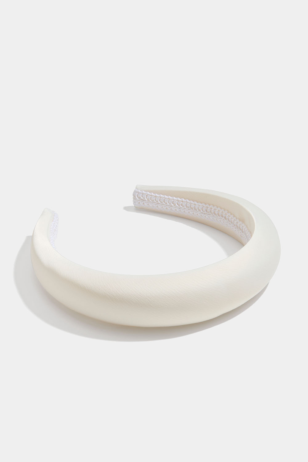 Bredt, hvidt, polstret diadem i imiteret silke.