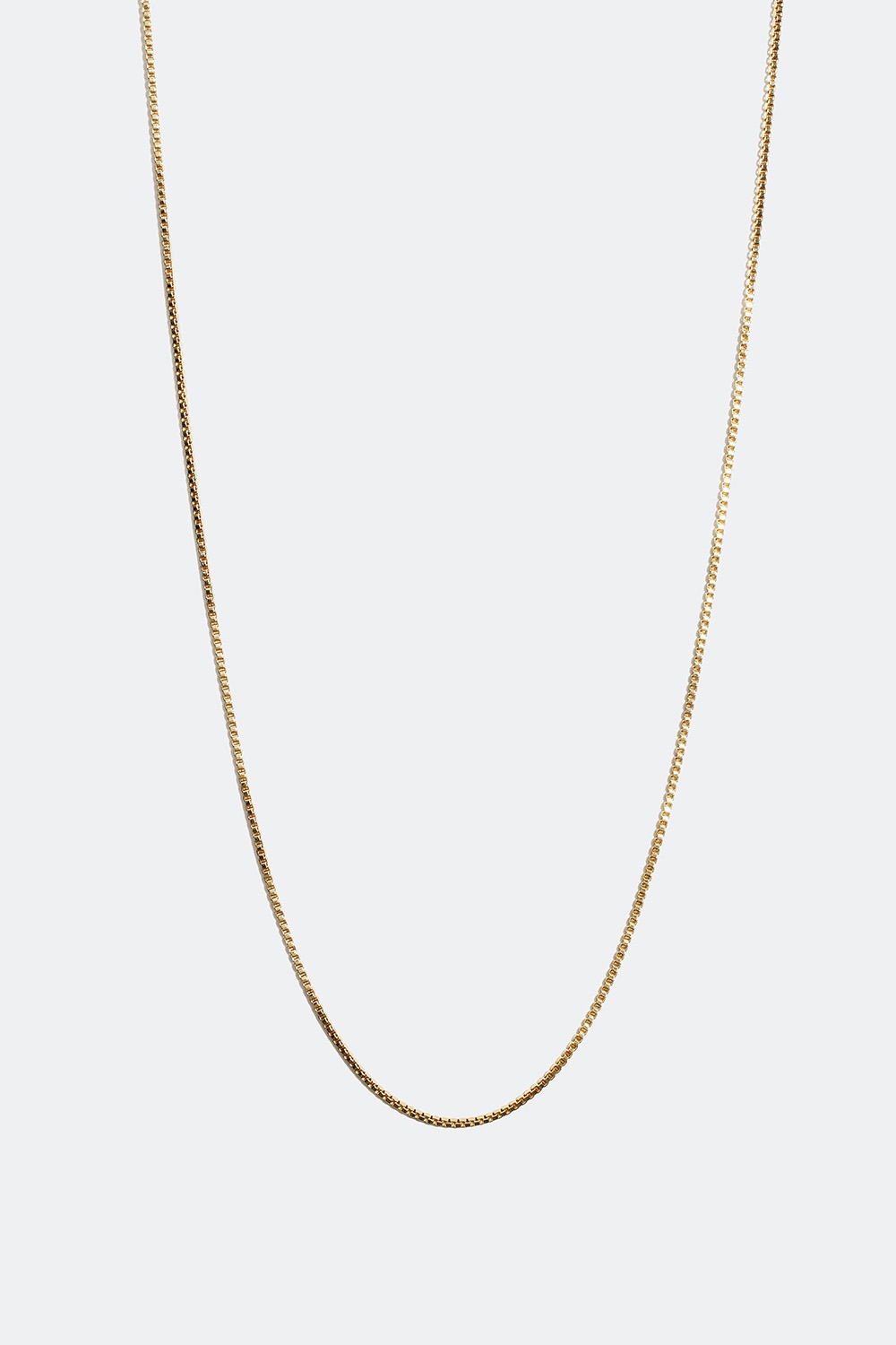 Veneziahalskæde i metal. En kæde med et firkantet design, som er flot at bruge alene. Den perfekte hverdagshalskæde, som også kan suppleres med vedhæng eller kombineres med andre halskæder for at opnå et lag på lag-look. Halskæden er 55 cm lang, men har et forlængerstykke på 5 cm, så du kan gøre den længere efter behov.