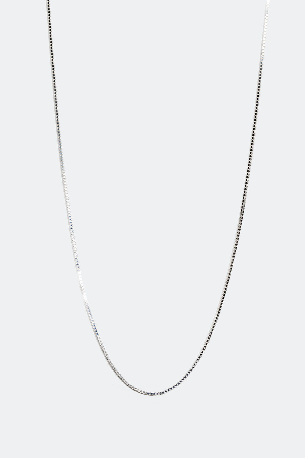 Tynd veneziahalskæde i ægte sølv. En kæde med et firkantet design, som er flot at bruge alene. Den perfekte hverdagshalskæde, som også kan suppleres med charms eller kombineres med andre halskæder, så du opnår et lag-på-lag-look.