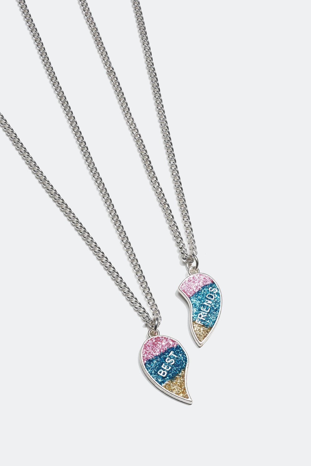 En halskæde du kan dele med din bedste ven. På den ene halvdel af hjertet står der "Best" og på den anden halvdel står der "Friends". Hjertet er i farverne lyserød, blå og guld.