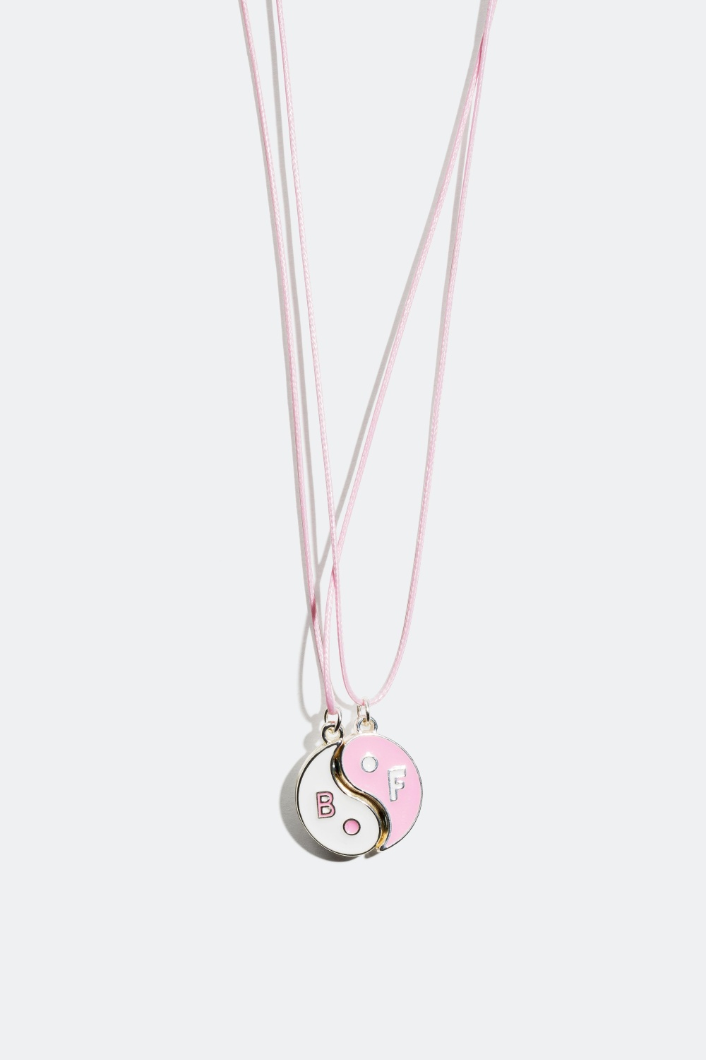 Vennehalskæde med Yin og Yang. To halskæder i lyserød og hvid som kan sættes sammen ved hjælp af en magnet. Du kan dele halskæden med din bedste ven. Længden på kæden kan justeres 5 cm.