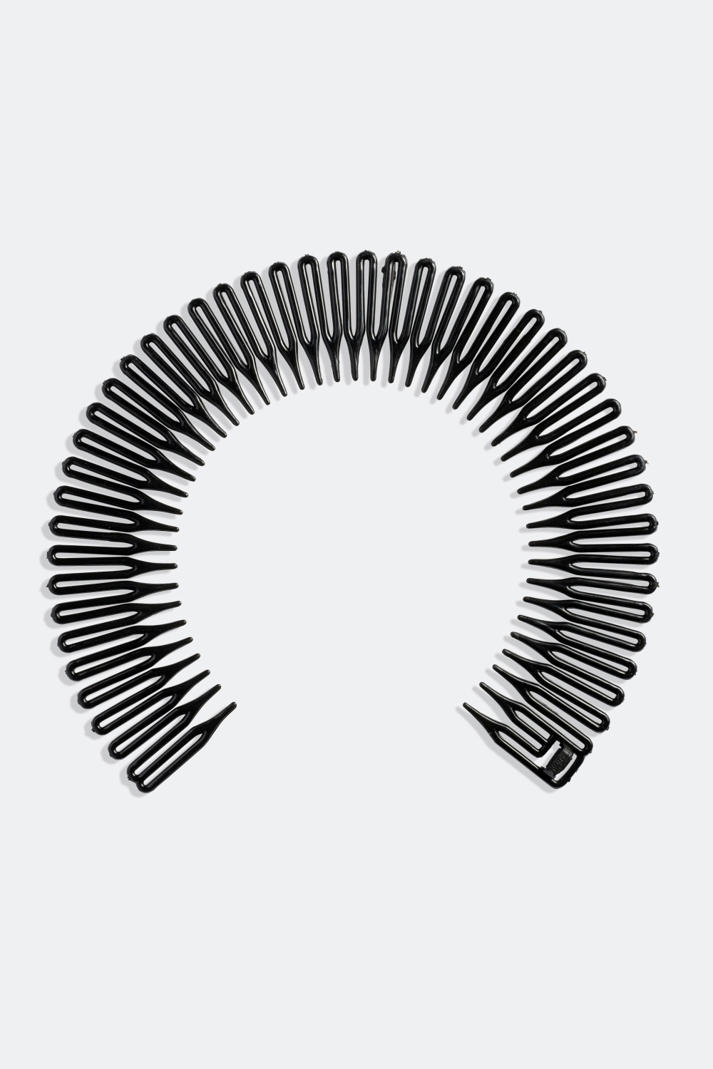 Zigzag hårbøjle. Perfekt når man ønsker at fjerne håret væk fra ansigtet. Hårbøjlen er i plast og takket være det zigzag design, så er den også elastisk. Hårbøjlen kan justeres ved hjælp af spændet.