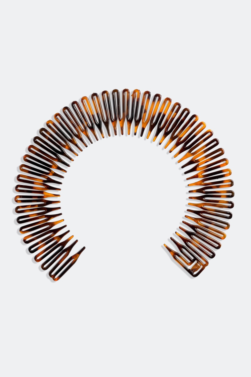 Zigzag hårbøjle. Perfekt når man ønsker at fjerne håret væk fra ansigtet. Hårbøjlen er i plast og takket være det zigzag design, så er den også elastisk. Hårbøjlen kan justeres ved hjælp af spændet.