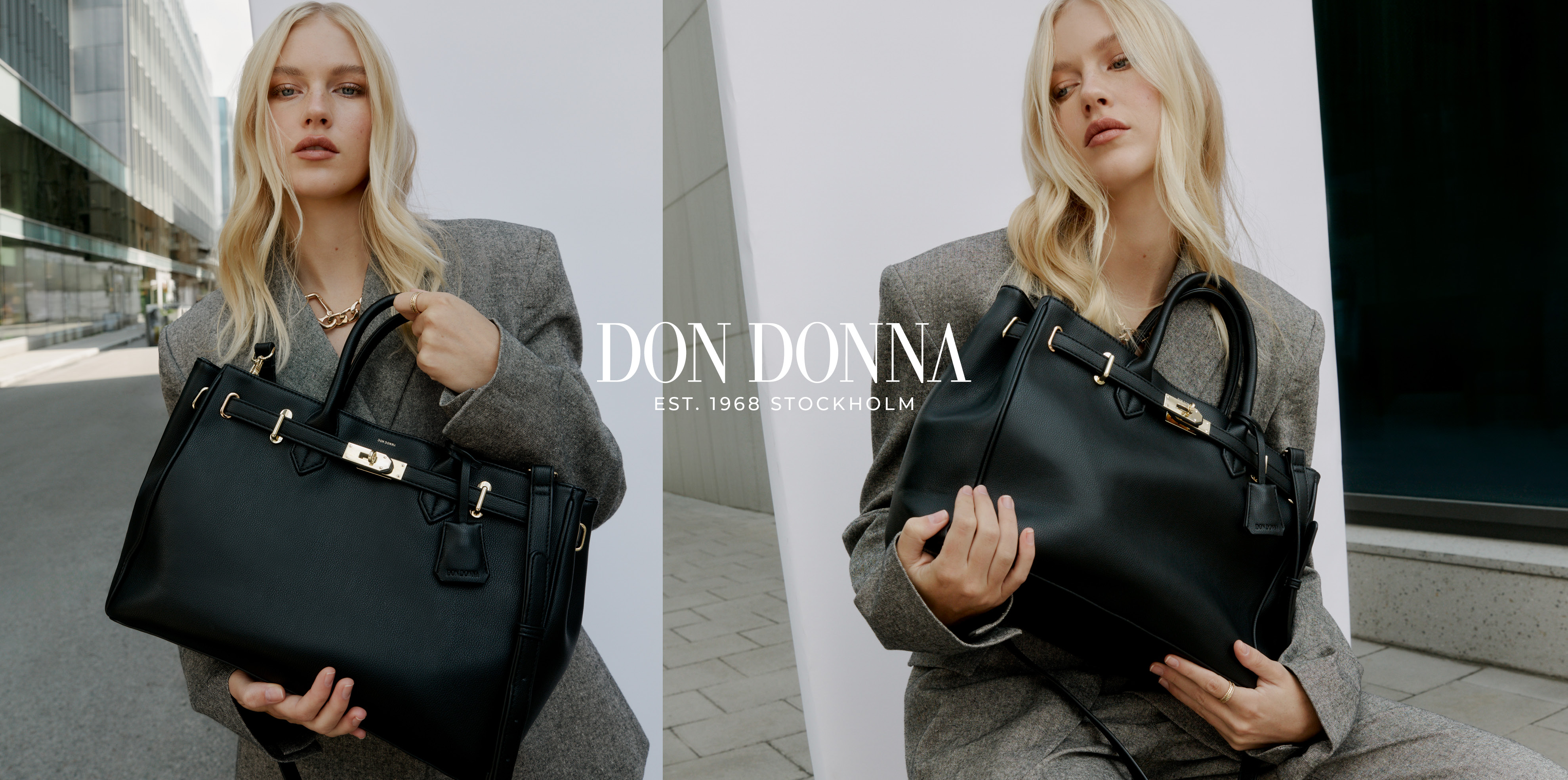 Don Donna blev grundlagt i Stockholm i 1968 og er kendt for sine tasker, punge og accessories, der kombinerer skandinavisk design med mode, kvalitet og funktion.